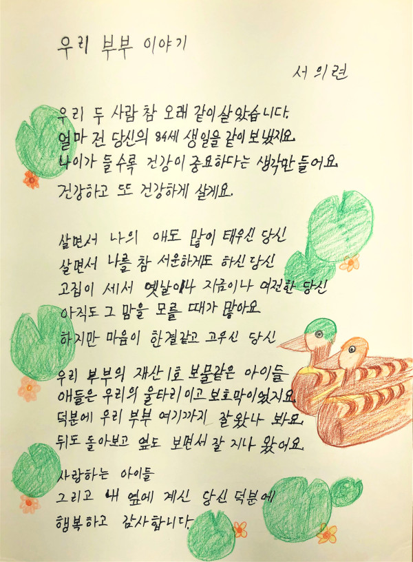 일평생을 함께 살아온 남편을 작품으로 표현해내며 가족에 대한 소중함을 일깨우는 작품