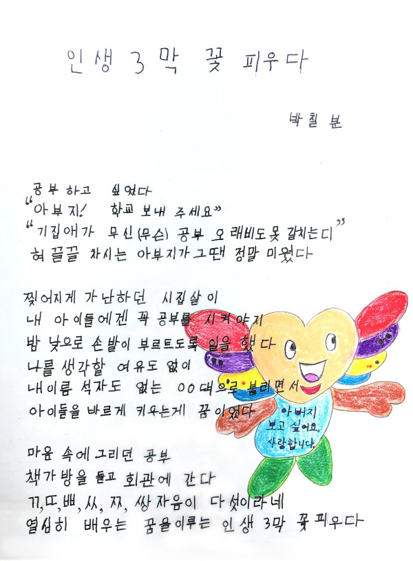 공부를 하고 싶어도 집안이 가난해서 공부를 못해서 아버지를 원망했는데, 그때 못했던 공부 지금이라도 시작하니 아버지가 더 그립다.