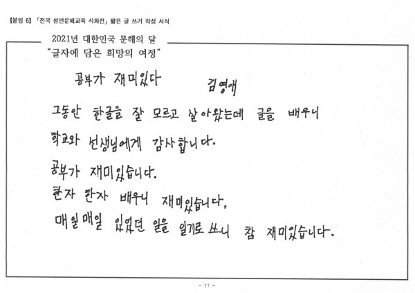 공부가 재미있다 > 2021 성인문해교육 짧은글