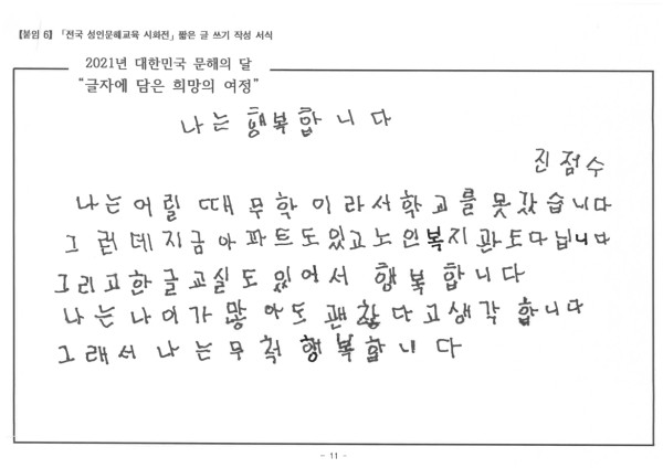 나는 행복합니다 > 2021 성인문해교육 짧은글