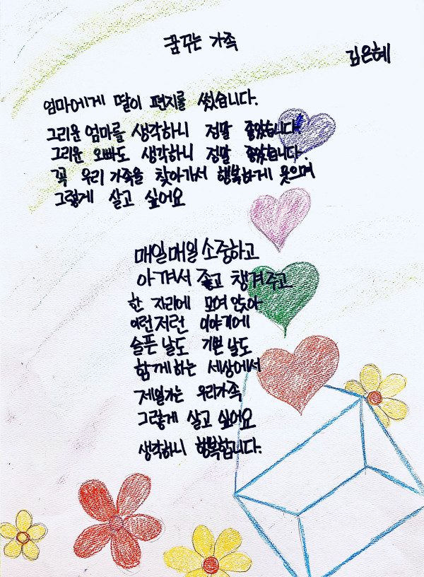 꾸준한 자기 계발 및 학습으로 자립을 꿈꾸며, 장애가 있으신 어머니와 친오빠가 함께 모여서 살 수 있기를 바라는 희망이 깃든 작품입니다.