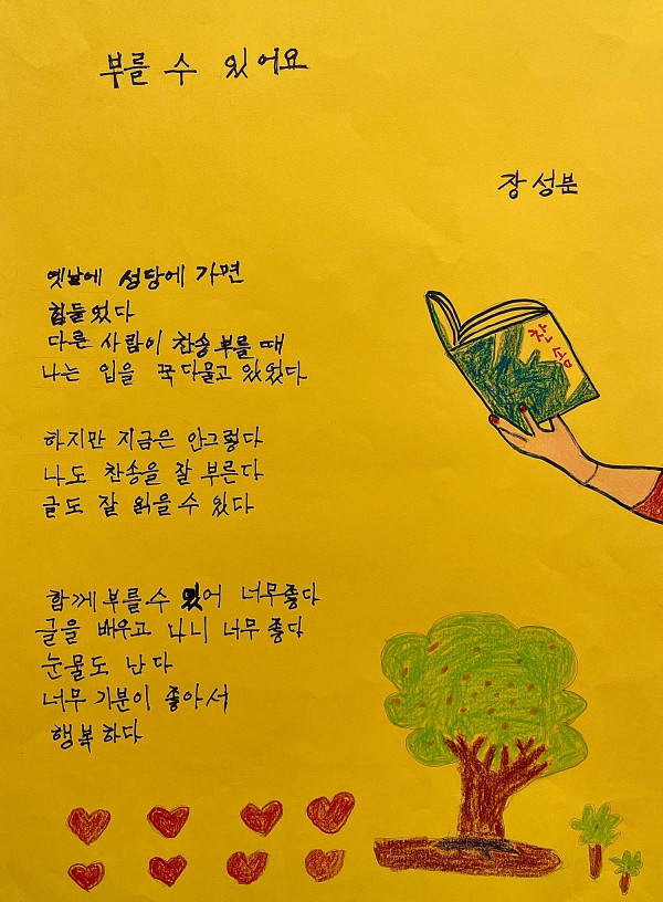 아들을 하늘에 보내고 힘든 시간들을 보냈고 지금도 잊지 못하고 힘들때가 많지만, 아침마다 학교에와서 공부도 하고 반 친구들과 함께 시간을 보내니 너무 감사하다. 사랑으로 대해주고 격려도 해주니 너무 감사하다.