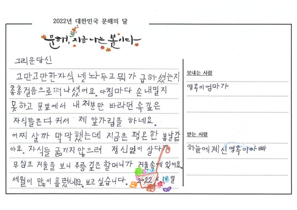 옹색한 가정형편으로 인하여 오직 자녀들을 키우겠다는 일념으로 닥치는 대로 일했다. 저무는 황혼녘에 지난 삶을 돌아보며 주름패인 자신의 모습을 보며 담담히 적은 글이다.