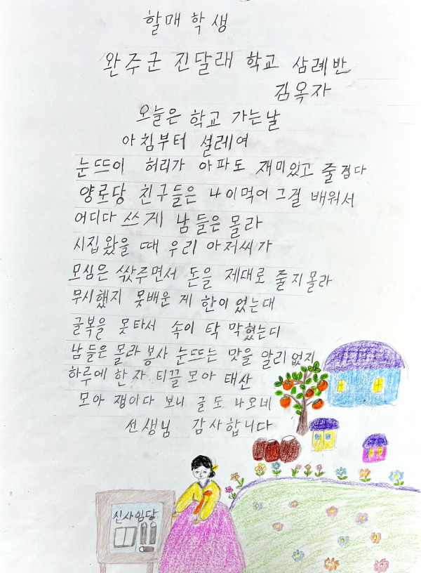 김옥자의 배움은 쓰린 아픔을 싸매주는 포근한 엄마품이다.