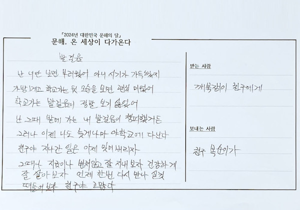 최복순의 배움은 창피함이 떳떳한 발걸음이 되었다.