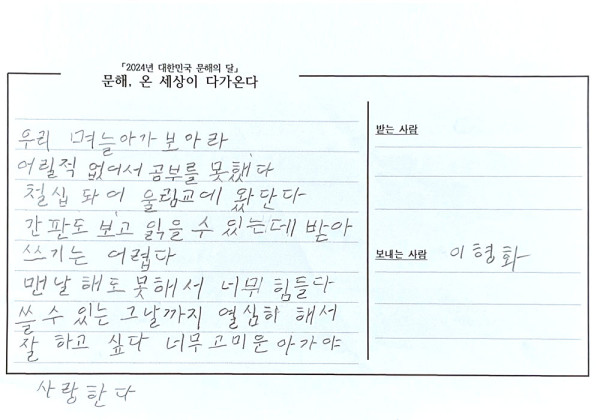 며늘아가보아라 > 2024성인문해교육 엽서쓰기