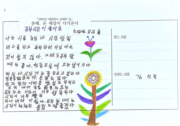김선복의 배움은 시간가는 것도 아깝지 않은 나날이다.