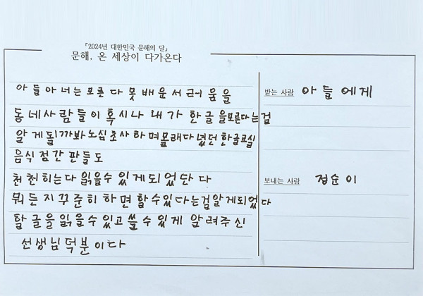 못배운 서러운 > 2024성인문해교육 엽서쓰기