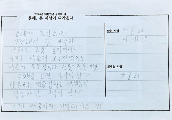 박봉례의 배움은 세상을 알게 하는것이다.