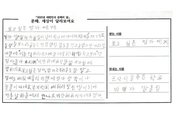 보고 싶은 엄마에게 > 2025성인문해교육 엽서쓰기