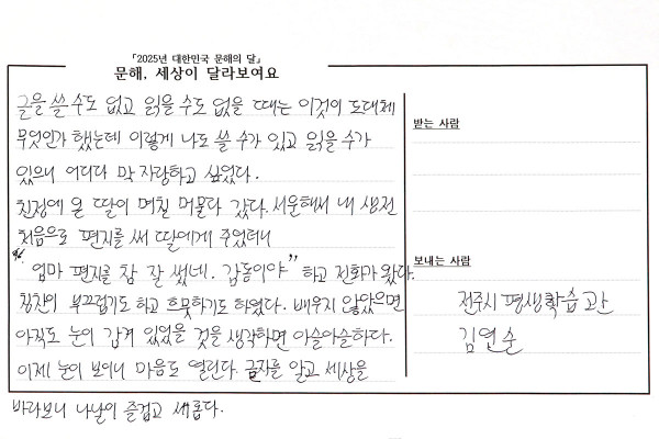 마음이 열리는 한글 > 2025성인문해교육 엽서쓰기