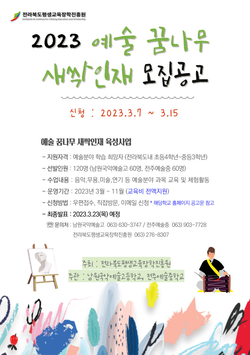 2023년 <예술꿈나무 새싹인재 육성사업> 새싹인재 모집 공고