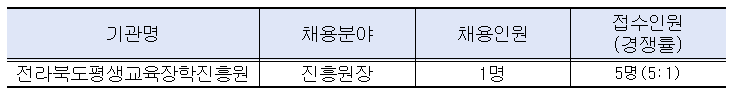 전라북도평생교육장학진흥원장 채용 원서접수 결과 페이지 정보 작성자 전북평생교육장학진흥원 댓글 0건 조회 4,706회 작성일 23-08-23 20:44 본문 전라북도평생교육장학진흥원장 채용 원서접수 결과 목록 이전글 전라북도평생교육장학진흥원장 채용 서류전형 합격자 및 면접시험 공고 다음글 전라북도평생교육장학진흥원 일반직(마급) 직원 채용 변경 공고문 댓글목록 댓글목록 등록된 댓글이 없습니다.
