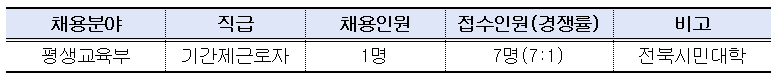 전북평생교육장학진흥원 평생교육부 전북시민대학 서류접수 결과 페이지 정보 작성자 전북평생교육장학진흥원 댓글 0건 조회 3,879회 작성일 24-01-19 10:17 본문 전북평생교육장학진흥원 평생교육부 전북시민대학 서류접수 결과 목록 이전글 전북시민대학 기간제근로자 채용 서류전형 합격자 발표 및 면접시험 일정 안내 다음글 평생교육부 육아휴직 대체 기간제근로자 채용 최종합격자 공고 댓글목록 댓글목록 등록된 댓글이 없습니다.