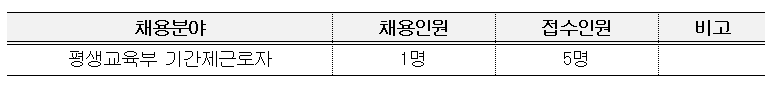 전북평생교육장학진흥원 평생교육부 전북시민대학 기간제근로자 채용 원서접수 결과 페이지 정보 작성자 전북특별자치도평생교육장학진흥… 댓글 0건 조회 2,584회 작성일 24-07-18 12:13 본문 전북평생교육장학진흥원 평생교육부 전북시민대학 기간제근로자 채용 원서접수 결과 목록 이전글 전북평생교육장학진흥원 인재육성부장(임기제 나급) 채용 원서접수 결과 다음글 전북평생교육장학진흥원 평생교육부 전북시민대학 기간제근로자 채용 재공고 댓글목록 댓글목록 등록된 댓글이 없습니다.