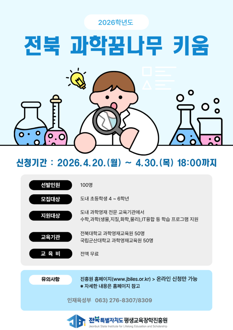2026년 「전북 과학꿈나무 키움사업」 참가학생 모집 안내