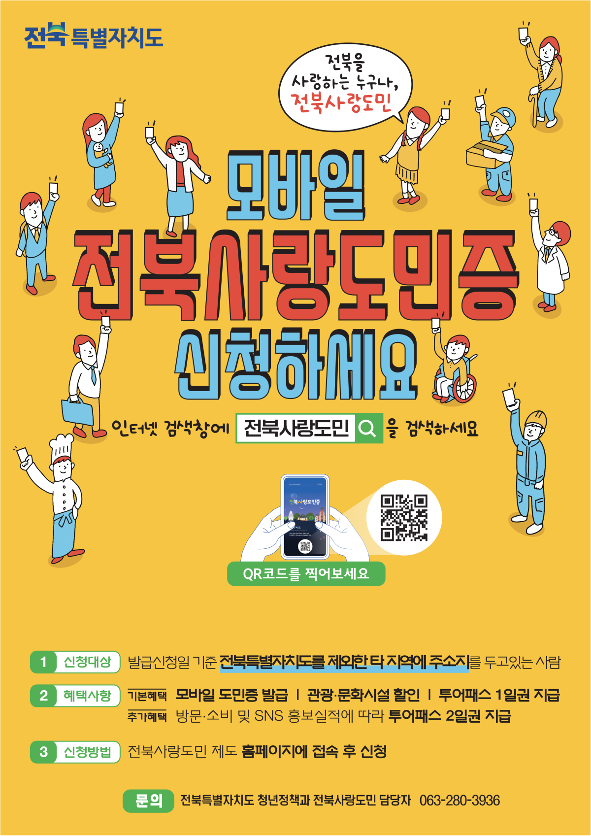 - (기 본) 전북사랑도민증 발급, 관광·문화시설 할인, 전북투어패스(1일권) 지급