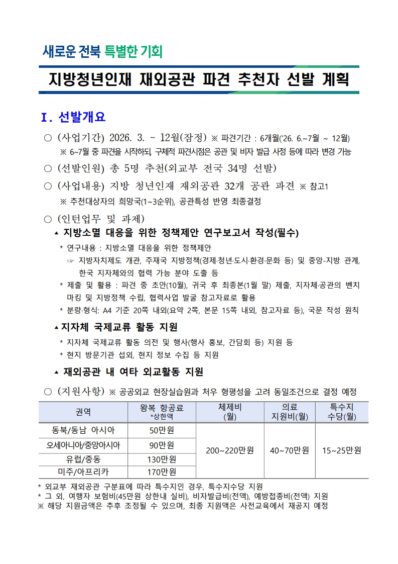 [전북특별자치도 안내] 지방청년인재 재외공관 파견 추천자 선발