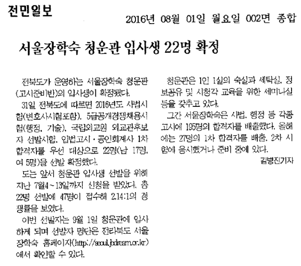 서울장학숙 청운관 입사생 선발관련 페이지 정보 작성자 인재육성재단 댓글 0건 조회 5,246회 작성일 16-08-02 11:31 본문 서울장학숙 청운관 입사생 선발관련 목록 이전글 서울장학숙 2학기 추가모집 관련 다음글 장학금기탁관련 보도자료 댓글목록 댓글목록 등록된 댓글이 없습니다.