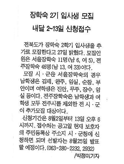 전라북도장학숙(서울,전주)2학기 입사생 모집 페이지 정보 작성자 관리자 댓글 0건 조회 5,405회 작성일 10-08-03 17:46 본문 서울,전주장학숙 2학기 입사생 모집기사 목록 이전글 전라북도장학숙(서울,전주)2학기 입사생 모집 다음글 272회 행정자치위원회 업무보고 댓글목록 댓글목록 등록된 댓글이 없습니다.