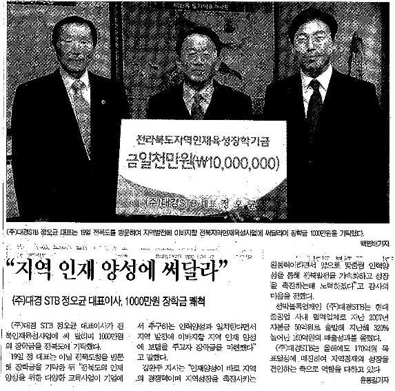(주)대경STB 인재육성 장학금 기탁 페이지 정보 작성자 관리자 댓글 0건 조회 5,470회 작성일 11-01-20 17:55 본문 장학금 기탁관련기사 목록 이전글 도 출연기관 경영평가 강화, 성과연봉제 도입 다음글 2011 전라북도장학숙 신규입사생 선발 댓글목록 댓글목록 등록된 댓글이 없습니다.