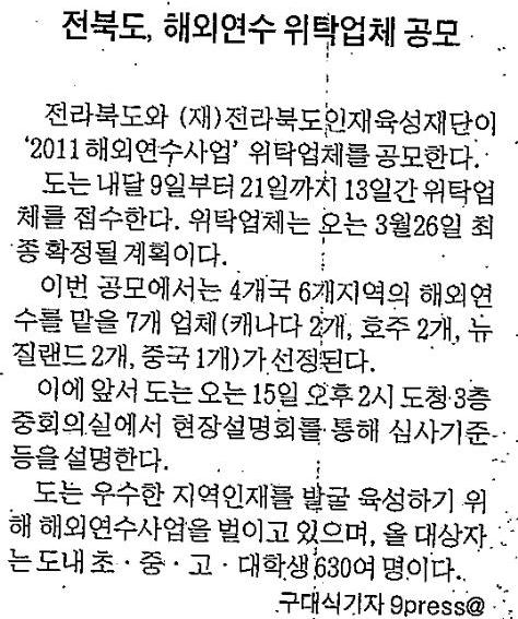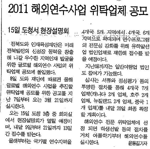 2011 글로벌 해외연수 위탁업체 공모 페이지 정보 작성자 관리자 댓글 0건 조회 5,299회 작성일 11-02-08 18:07 본문 해외연수 위탁업체 공모 목록 이전글 글로벌 해외연수생 감사편지 다음글 2011 전라북도장학숙 신규 입사생 선발 경쟁률 댓글목록 댓글목록 등록된 댓글이 없습니다.