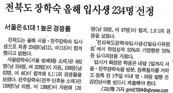 2011 전라북도장학숙 입사생 발표 페이지 정보 작성자 관리자 댓글 0건 조회 5,291회 작성일 11-02-15 18:15 본문 2011 신규 입사생 최종 선발 목록 이전글 글로벌 해외연수생 감사편지2 다음글 글로벌 해외연수생 감사편지 댓글목록 댓글목록 등록된 댓글이 없습니다.