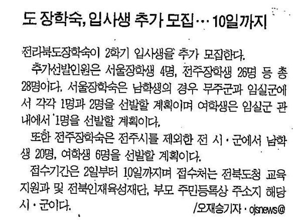 전북장학숙 2학기 추가모집 페이지 정보 작성자 관리자 댓글 0건 조회 5,338회 작성일 11-08-03 19:59 본문 장학숙 2학기 입사생 추가모집 목록 이전글 도 출연기관 성과연봉제 전환 다음글 글로벌체험 해외연수 캐나다 출발 댓글목록 댓글목록 등록된 댓글이 없습니다.