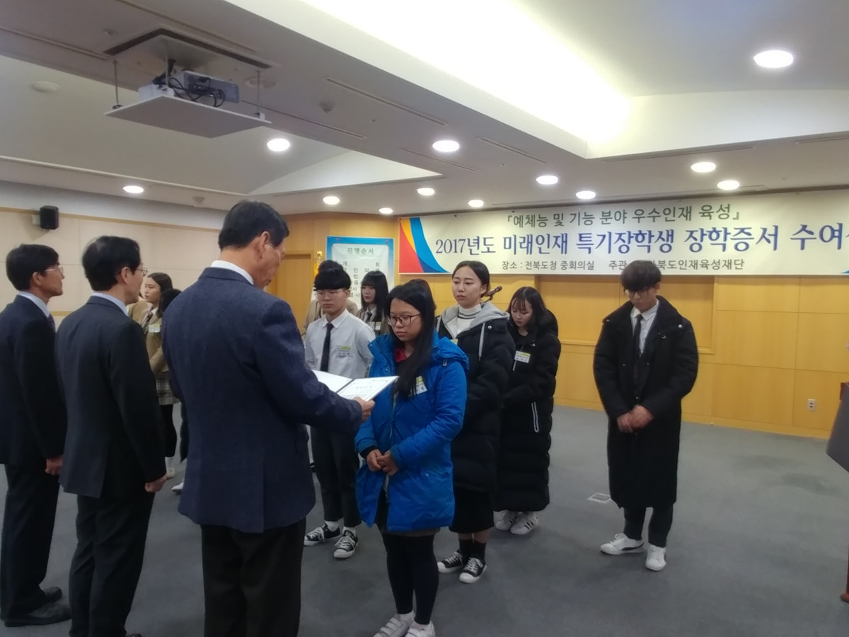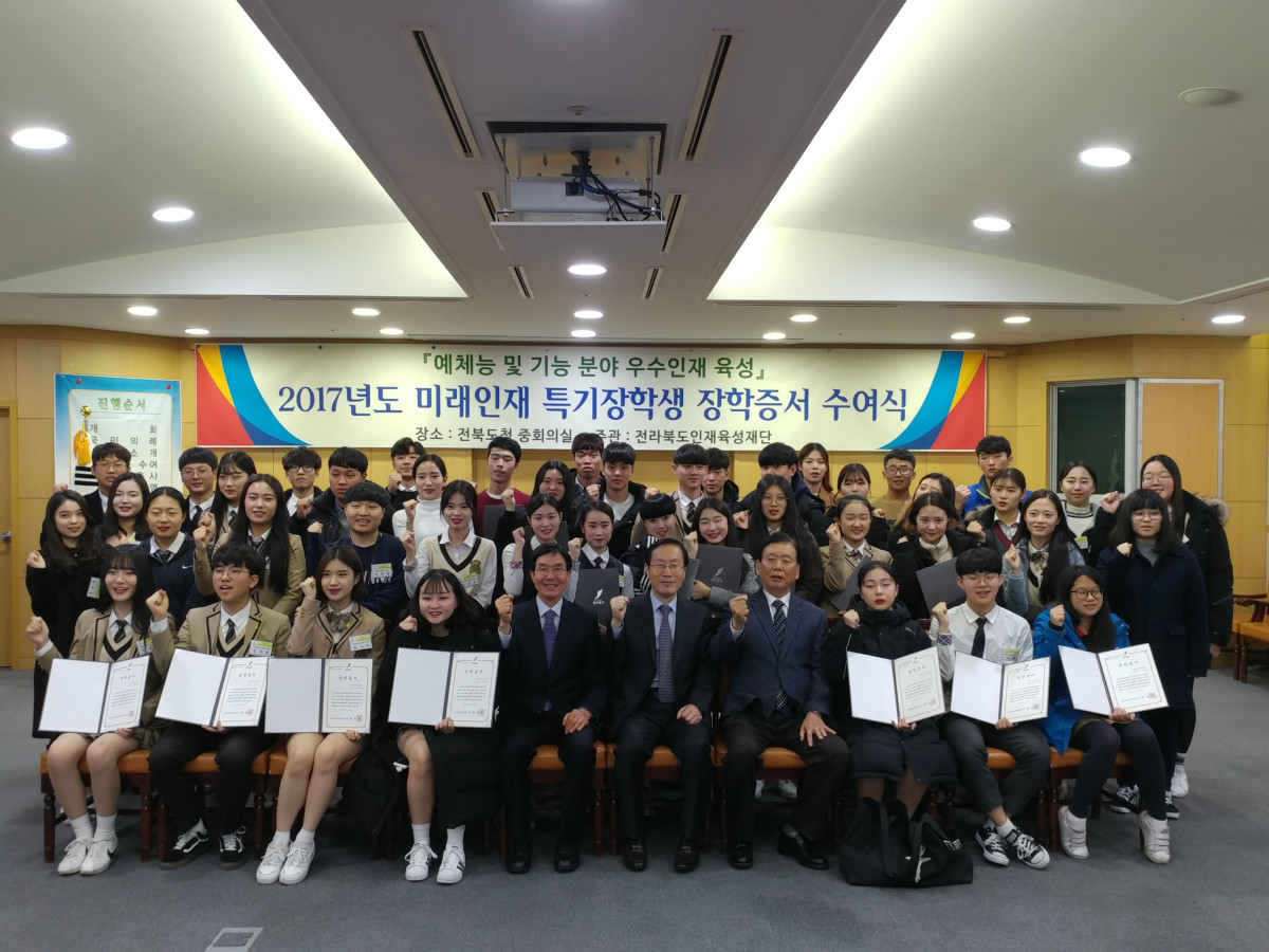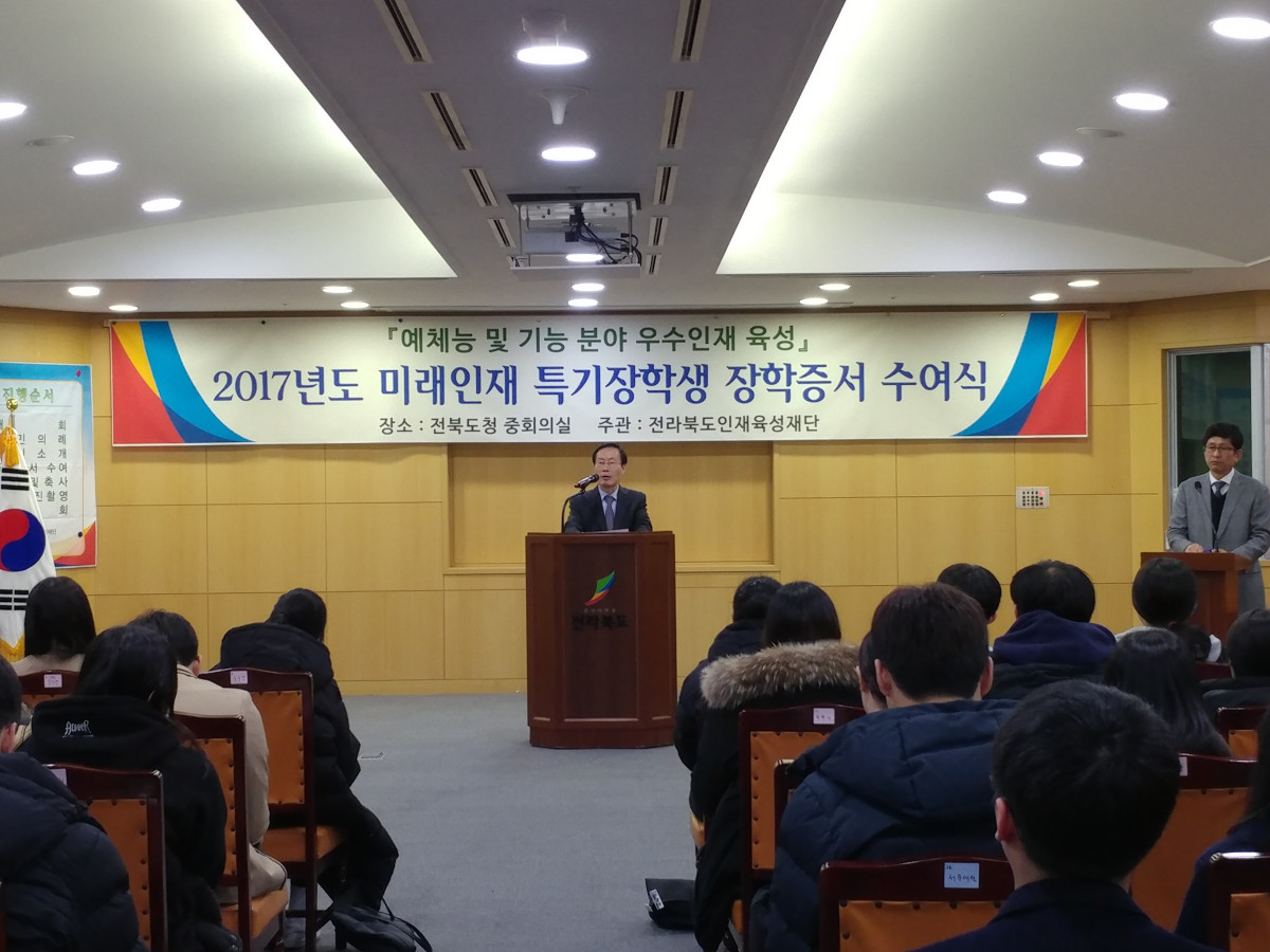 2017년도 미래인재 특기장학생 장학증서 수여식 페이지 정보 작성자 인재육성재단 댓글 0건 조회 2,487회 작성일 17-11-27 17:05 본문 2017년도 미래인재 특기장학생 장학증서 수여식 2017. 11. 27 (월) 16:00 전북도청 중회의실 목록 이전글 장학금 기탁 다음글 성과보고회 댓글목록 댓글목록 등록된 댓글이 없습니다.
